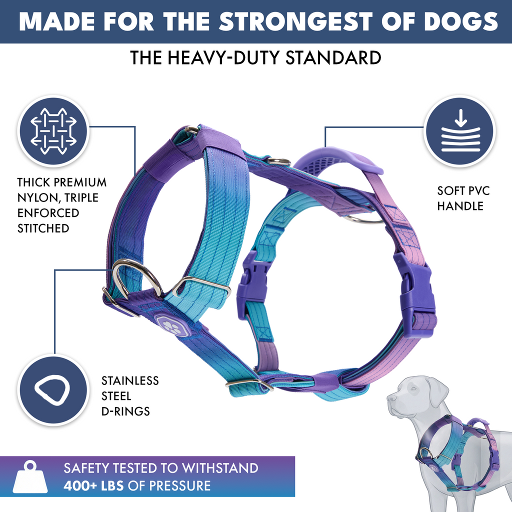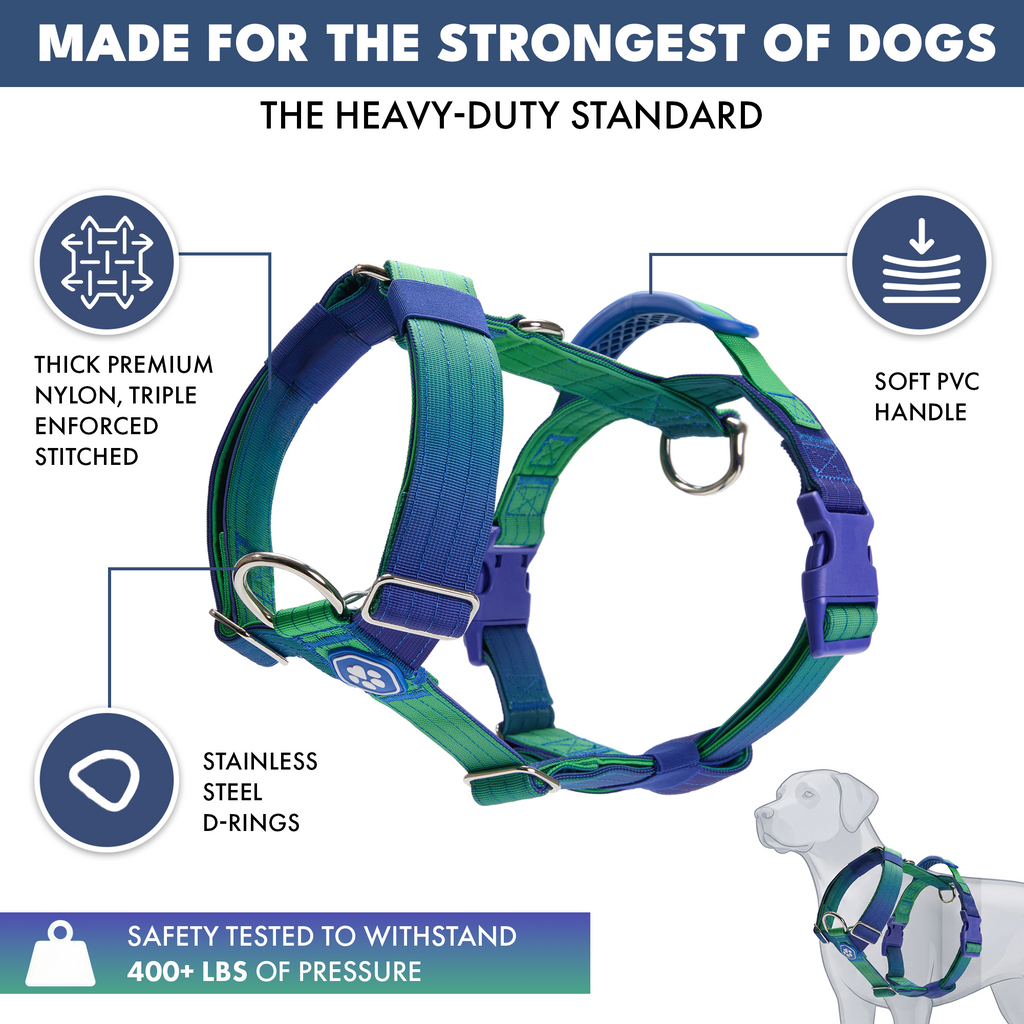 - Heavy Duty - Triple stitched military grade nylon exterior, soft neoprene interior padding. Pressure tested, can withstand the strongest of dogs.