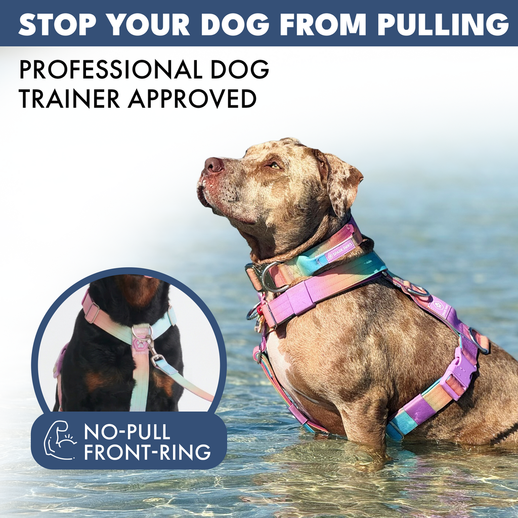 - 3-Way adjustable - Harness is adjustable around the neck/torso and waist area, can comfortable fit broad-chested breeds