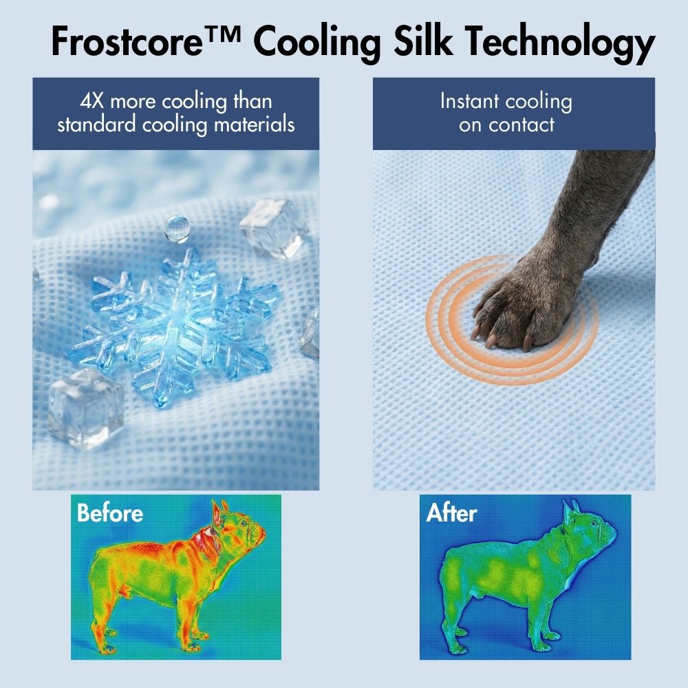 • Made with Frostcore™ cooling fabric, the surface pulls heat away on contact to deliver an instant, refreshing cool feel—perfect for hot summer days and overheated pups.