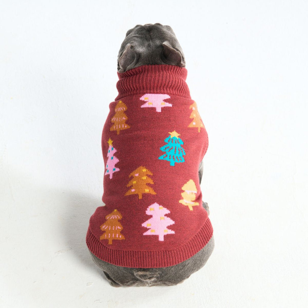 Christmas Knit Dog Sweater - Candy Trees Chestnut