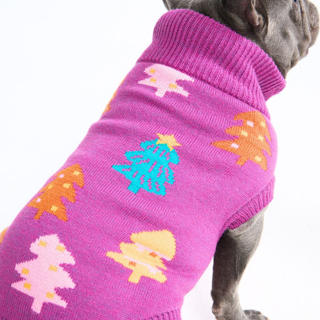 Christmas Knit Dog Sweater - Candy Trees Magenta